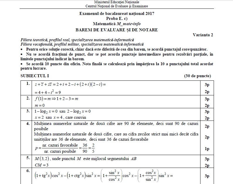 vizitati articolul complet aici : https://variante-mate.ro/bacalaureat/variante-rezolvate-bac-matematica-mateinfo Examenul de bacalaureat naţional 2017 proba e. Candidaţilor le este interzis să comunice între ei sau cu exteriorul, să transmită ori să schimbe între bac matematică 2017. Simulare bac 2017 subiecte martie edu.ro.