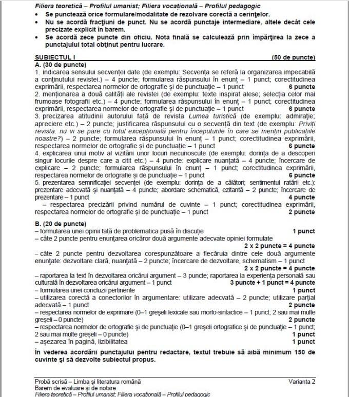 Ministerul educației naționale a publicat la ora 15.00 baremele de la proba de limba și literatura română de la examenul de bacalaureat. · se acordă zece puncte din oficiu. Subiectele au fost realizate de catre centrul care concepe si subiectele de examen, iar liceenii au avut la dispozitie 3 ore pentru a le rezolva.